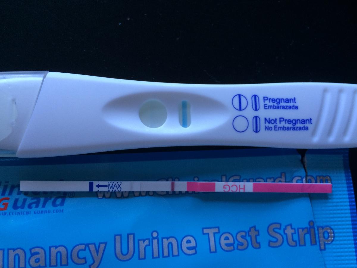 Mult honapban mar irtam ide, de mivel nem vagyk egy nagy forumozo, igy inkabb csak olvasni szoktalak titeket. Ma van a nem vart napja, 14 dpo, de mivel tegnap szilveszterkor ugy voltam vele, hogy csinalok egy tesztet es ha negativ akkor akar megihatok egy-ket pohar bort is, reggel teszteltem. Az internetrol rendeltem teszt-csikokat es meglepetesemre nagyon-nagyon halvanyan pozitiv lett. Ezen felbuzdulva mivel volt itthon meg egy Clearblue tesztem is azt is megcsinaltam, es szinten nagyon nagyon halvanyan, de lattam ott meg egy csikot, bar inkabb a szaradas utan tudtam csak ugy lefotozni, hogy latszodjon is a kepen. Boldog voltam, hogy ugrott a borozas.