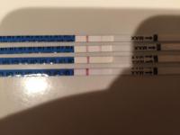 Tegnap vacsi után jutott csak eszembe tesztelni, szerintem azèrt fakóbb a csík, a mait vacsi elôtt, kicsit talán erôsebb. Ès mint írtam, ma reggel voltak ovu görcseim. Már csak tènyleg keveset, de mègis 20 órára kellene kitartaniuk!!!! Szerintetek? Engedjem el?